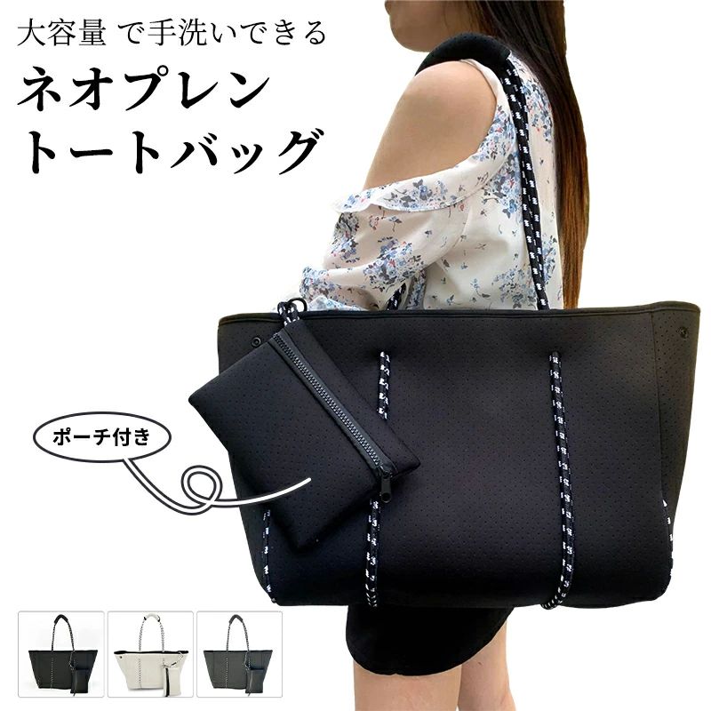 レ 夏 軽量 肩掛け 大容量 大きめ 底板付き ネオプレーン おしゃれ 生地 トート トートバッグ バッグ ネオプレンバッグ