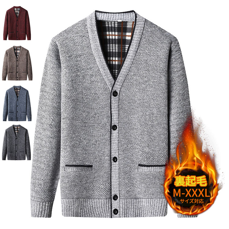 カーディガン メンズ裏起毛 秋冬 ニット 厚手 カジュアル Vネック 裏起毛 ビジネス 高齢者 前開き 暖かい セーター 防寒 男性 トップス 長袖 クリスマス プレゼント M-XXX 部屋着