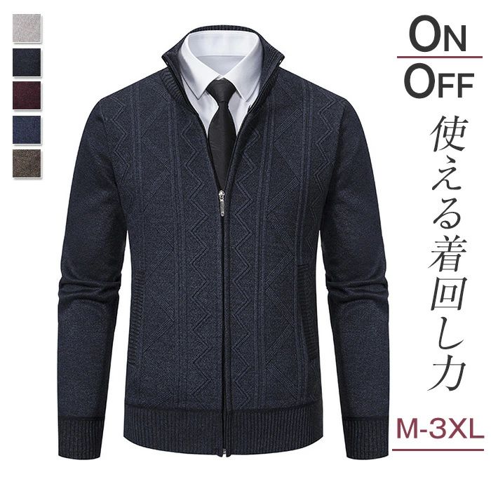 カーディガン メンズ 春 秋 冬 厚手ジャケット ジップアップ フ