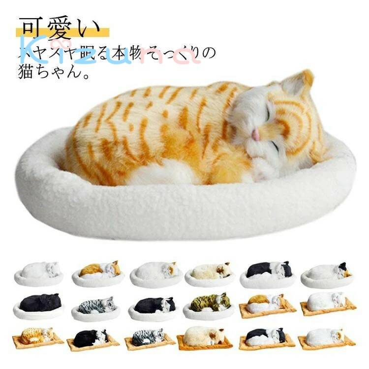 呼吸して眠るリアルな猫のぬいぐるみ ねこ ぬいぐるみ リアル 本物 そっくり ペット すやすや眠る お腹が上下する 動く ペットロス ベッド付き アレルギー 動物 アニマル 子供 癒し