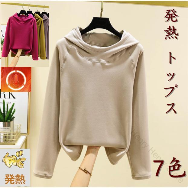 パーカー レディース カットソー インナー 発熱 トップス ライトアウター ゆったり プルオーバー 無地 暖か 軽量 秋冬 上着 通勤 ギフト おしゃれで快適な防寒着 着痩せ