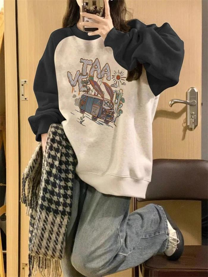 カジュアル 可愛い 春秋 学生 冬 トップス レディース プリント 長袖レディースファッション スウェット トレーナー ゆったり