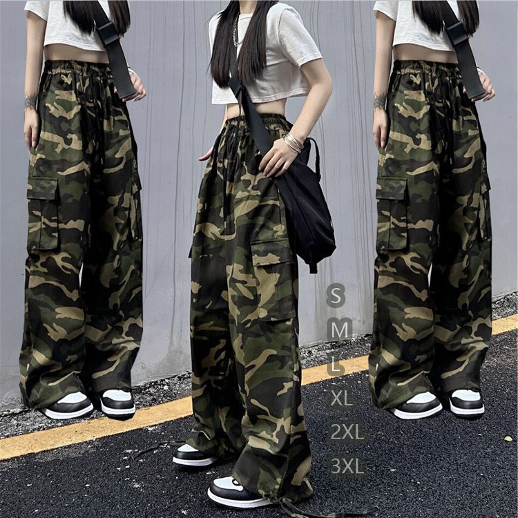 ミリタリーパンツ レディース ロングパンツ カーゴパンツ 迷彩 ボトムス 迷彩パンツ ズボン ワイドパンツ 大きいサイズ アメカジ アウトドア キャンプ ダンス衣装 韓国フ パンツ