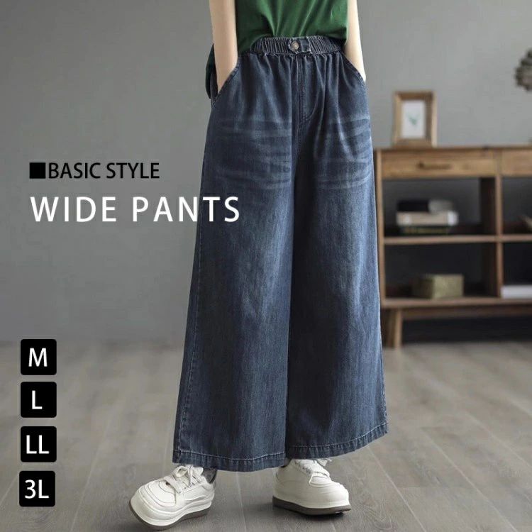 デニム ワイドパンツ レディース デニムパンツ ウエストゴム リ