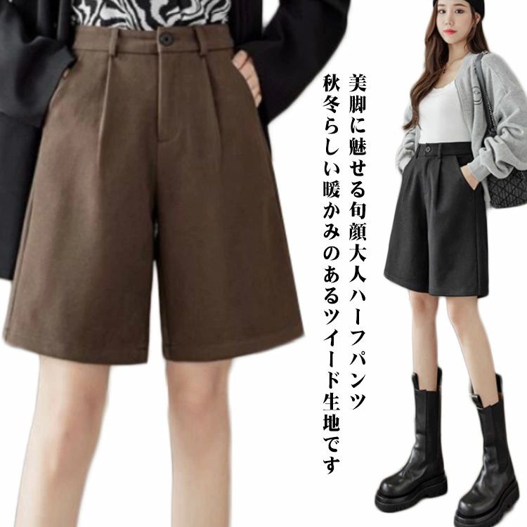 秋冬コーデ ハーフパンツ ショートパンツ 半ズボン 女性 大きいサイズ 通勤 大人可愛い ウォッシャブル 秋冬 おしゃれ カジュアル レディース 体型カバー 美脚 ブ 無地