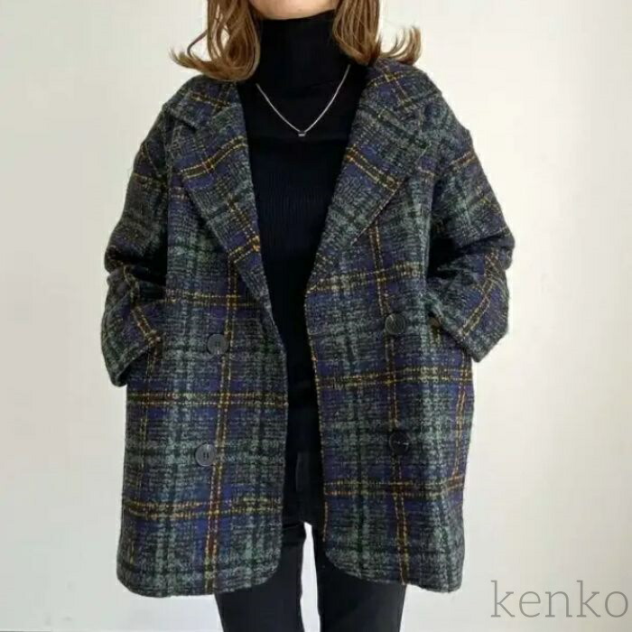 チェスターコート レディース チェック柄 秋冬 アウター 中綿ジャケット ダブルブレスト コート 折り襟