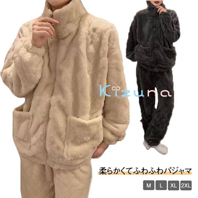 パジャマ もこもこ 上下セット 暖かい 部屋着 モコモコ プレゼント 可愛い レディース マイクロファイバー 大きいサイズ セット 前開き 長袖 あったか 上下 秋冬 冬 極暖 ギフト ルー ふわふわ