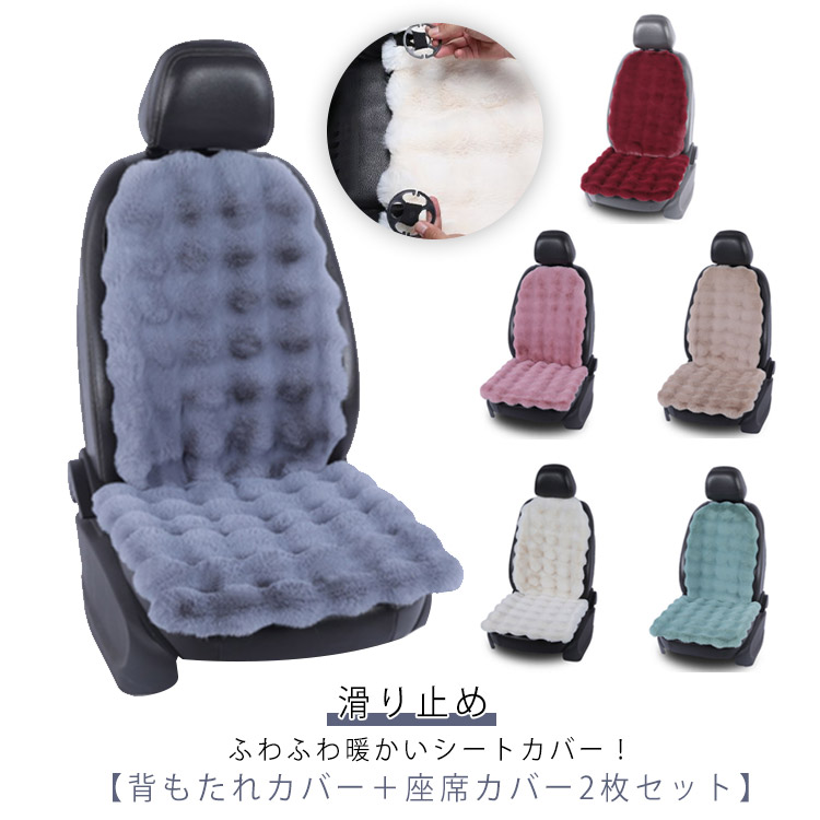 2枚セット 車 おしゃれ 防寒 車用 助手席 ぽかぽか カーシートカバー 背もたれ+座席カバー ファー 暖かい 運転席 シートカバー フェイクファー もこもこ 秋冬 保温 汎用 自動車 座 カーシート