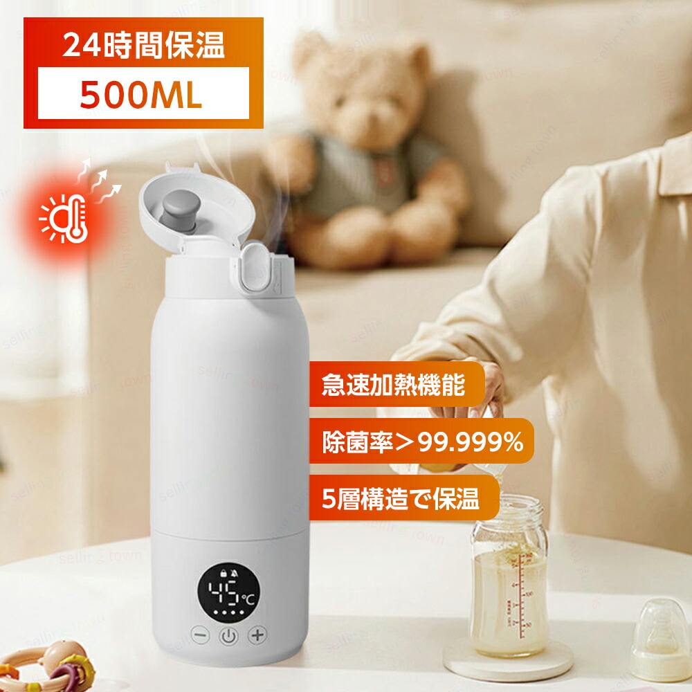 電気ポット お湯・コーヒー・お茶・粉ミルク 水筒 電気温水カップ 一人用 ステンレス 5重構造 キャンプ・宿泊・出張・車中泊・オフィス対応 持ち運びケトル 除菌 プレゼントお祝い