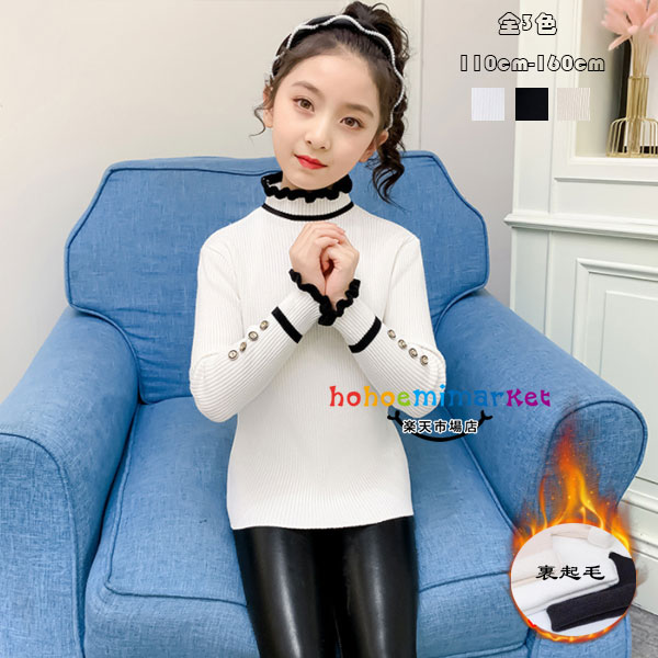 子ども服 キッズ 裏起毛 ニット セーター おしゃれ セーター ページュ ブラック ホワイト 女の子 トップス セーター ハイネック 長袖 可愛い 暖かい 防寒 お出かけ 通学着 冬着 110-160