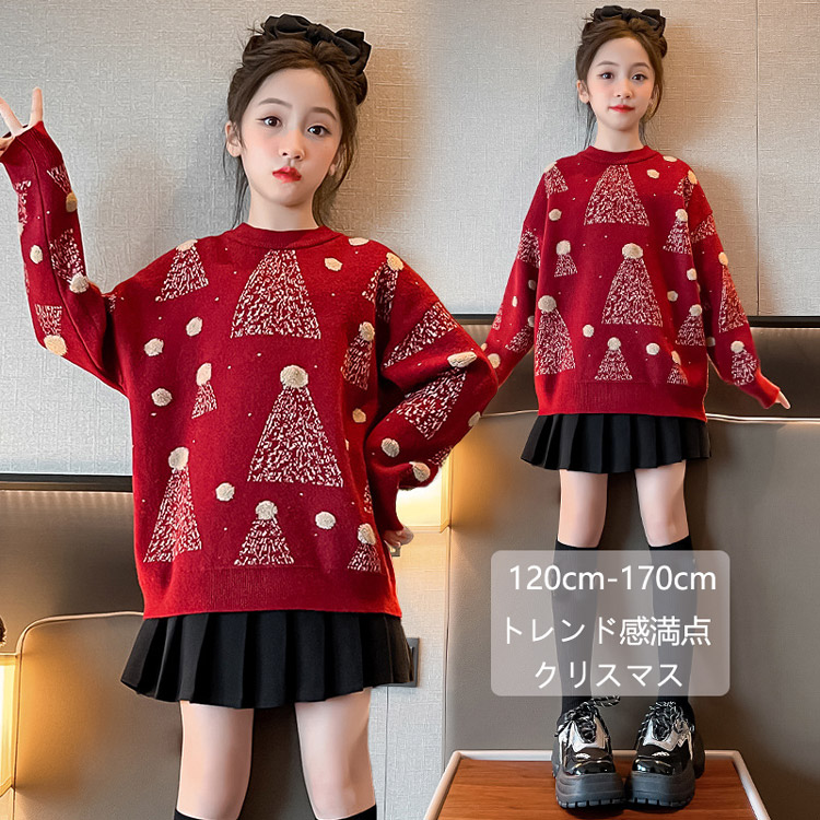 クリスマス セーター 子供服 ニットセーター 子供 長袖セーター 女の子 長袖ニット キッズ ニットトップス プルオーバー 韓国 レッド 4色 こど 可愛い女児