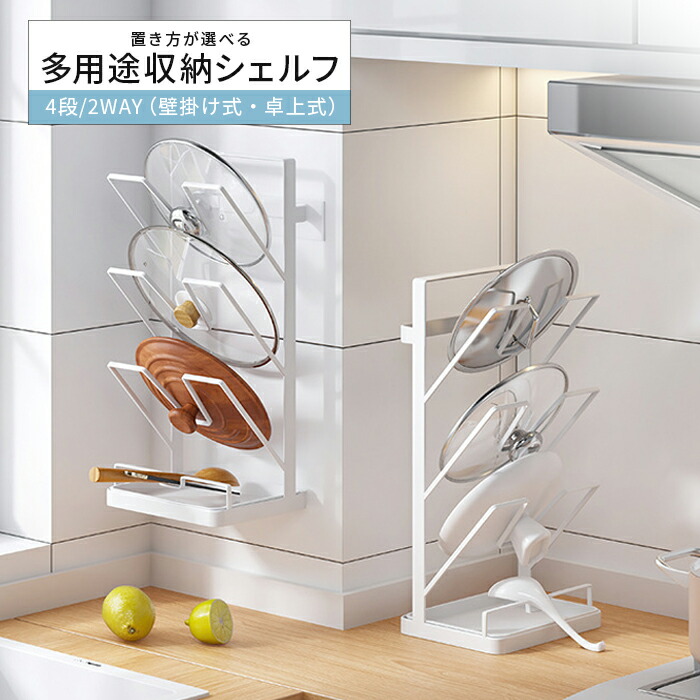 置き方が選べる 多用途収納 シェルフ なべぶた 鍋蓋 鍋蓋ホルダー 鍋蓋立て 鍋蓋ラック 鍋蓋収納 鍋蓋スタンド ラック まな板 おたま スタンド キッチン用品 キッチン収納 収納 キッチン