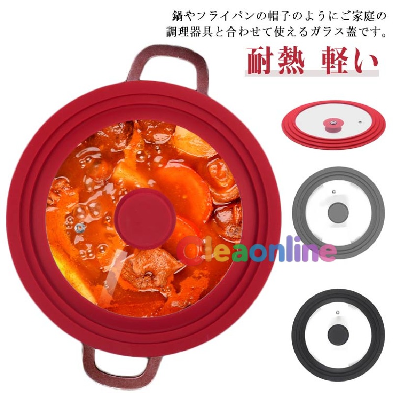 軽い ガラス蓋 透明 シリコーンリッド 鍋蓋 シリコーン フライパンカバー フタ 片手鍋 耐熱