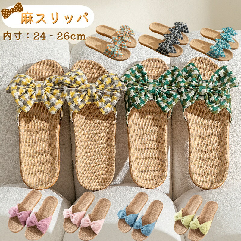 スリッパ ルームシューズ レディース 女の子 全9色 23~26cm リボン かわいい リネンスリッパ 快適 おしゃれ 婦人用 麻スリッパ リネン 麻 静音 軽い 春 秋 冬 床暖房対応 夏