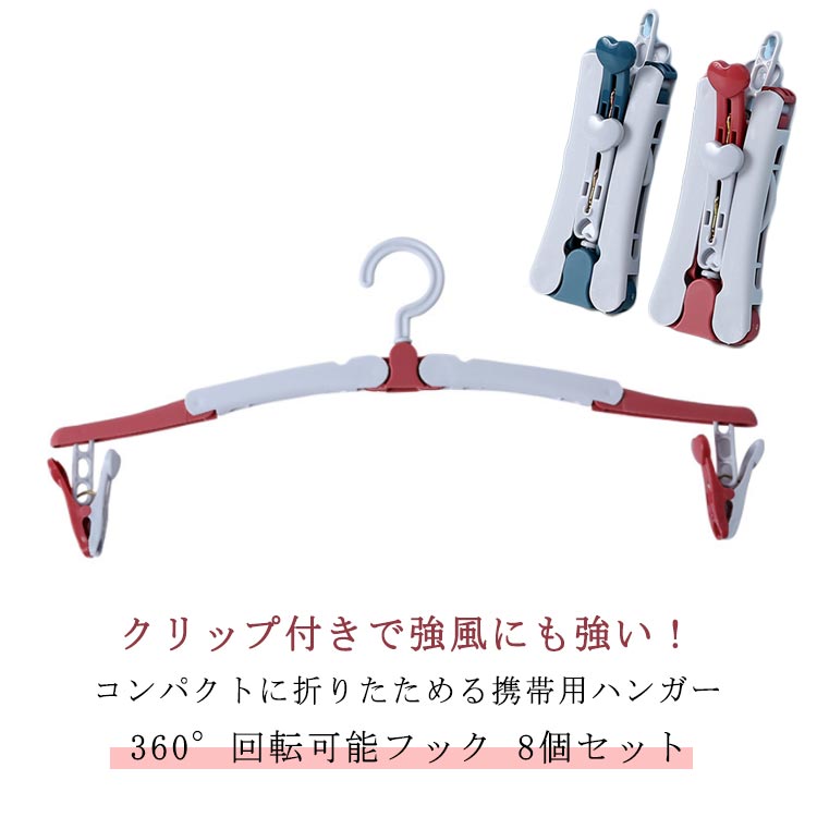 折りたたみハンガー 8個セット クリップ付き 取り外し可能 360°回転可能 折り畳み ハンガー 旅行 携帯 便利 持ち運び 防風 コンパクト 小型 小さい 軽量 干し 物干しハンガー 携帯ハ 洗濯物
