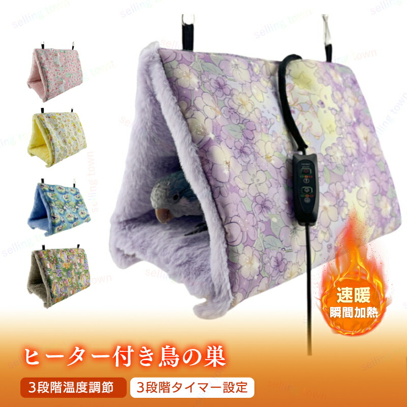 暖房付き鳥の巣 ヒーター付き 加熱 温度調整 タイマー機能 冬 暖かい 鳥の巣 ハウス 巣箱 吊り下げ 冬のインコヒーターパッド ハンモック 隠れ家 取り外 セキセイインコ