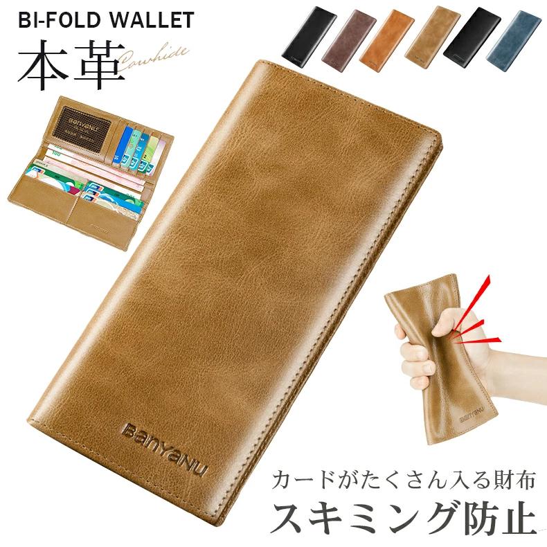 カードがたくさん入る 革 コンパクト 長財布 RFID メンズ スキミング防止 二つ折り財 カードケース 財布 二つ折り 薄い