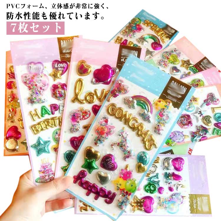交換 シール キラキラ 立体シール デコシール 泡ステッカー 7枚セット 3dシール 女の子 小学生 シール帳 カラフル ノート 原宿 SNS デコ 派手 友達 ぷくぷく