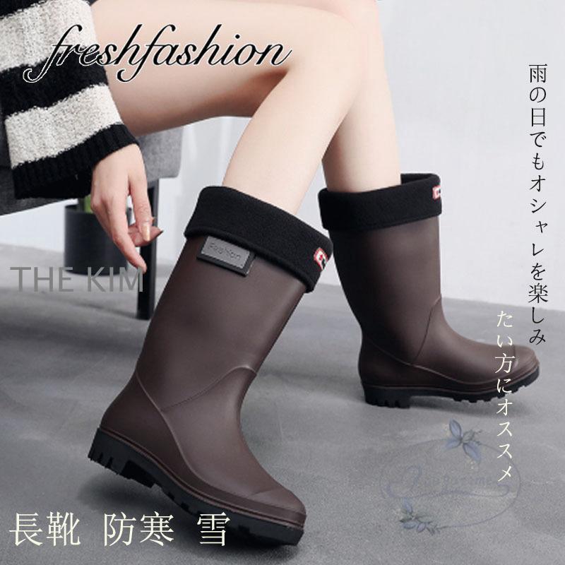 レインブーツ ロング レディース 長靴 防寒 雪 大きいサイズ 歩きやすい 痛くない 無地 シンプル 防水 防滑 あったか シューズ 梅雨 雨具 黒 ブラック 雨靴