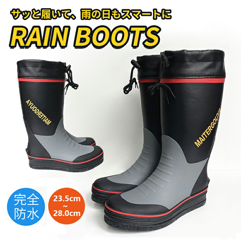完全防水で滑りにくく疲れにくいメンズレインブーツ 通学通勤や