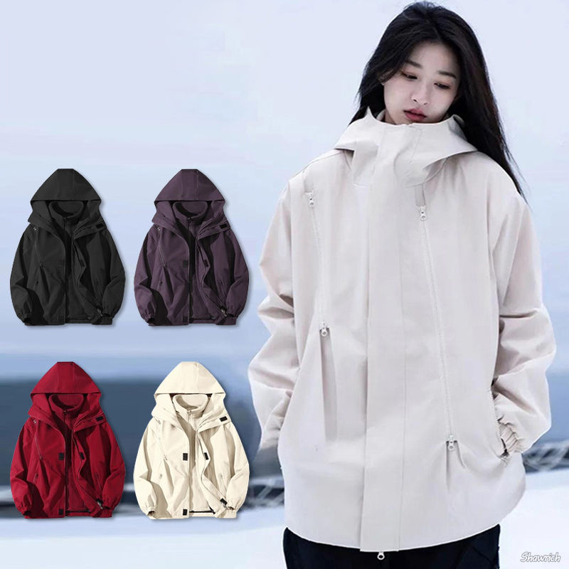 スノーボードウェア ジャケット 単品 スキーウェア スノボウェア アウター レディース メンズ 前開きジャケット 無地 配色 フード付き