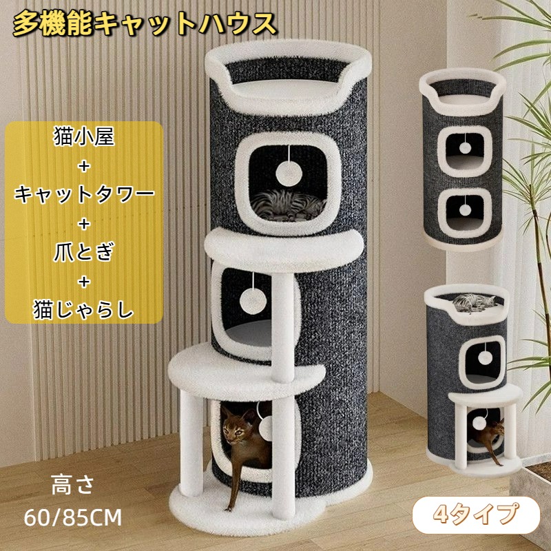 キャットタワー 猫タワー 猫ハウス 円筒形 ジャンプ台付き 爪とぎ スクラッチポール 多段式キャットツリー 省スペース 組み立て簡単 屋内用ツリーハウス コンパクト 一体型