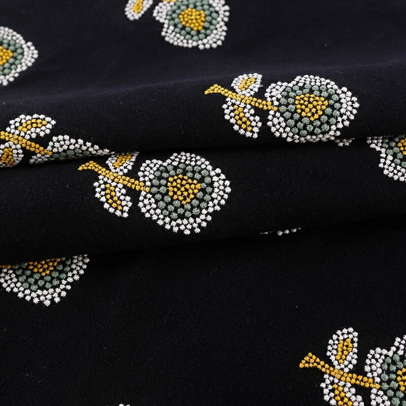 120幅 90単位 生地 布 布地 ぬの きじ 刺繍生地 綿麻生地 花柄 黒 ハンドメイド 手作り 手造り 手芸 材料 ソーイング 服地