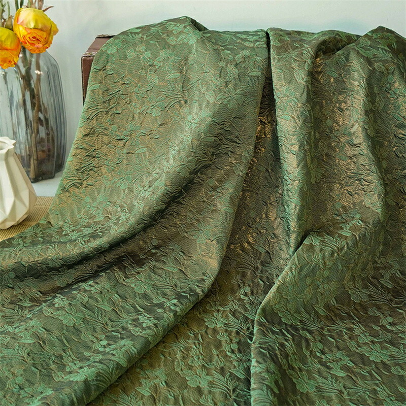 140幅 90単位 生地 布 布地 きじ エンボス生地 ジャカード生地 洋服生地 花柄 緑 グリーン 色織り