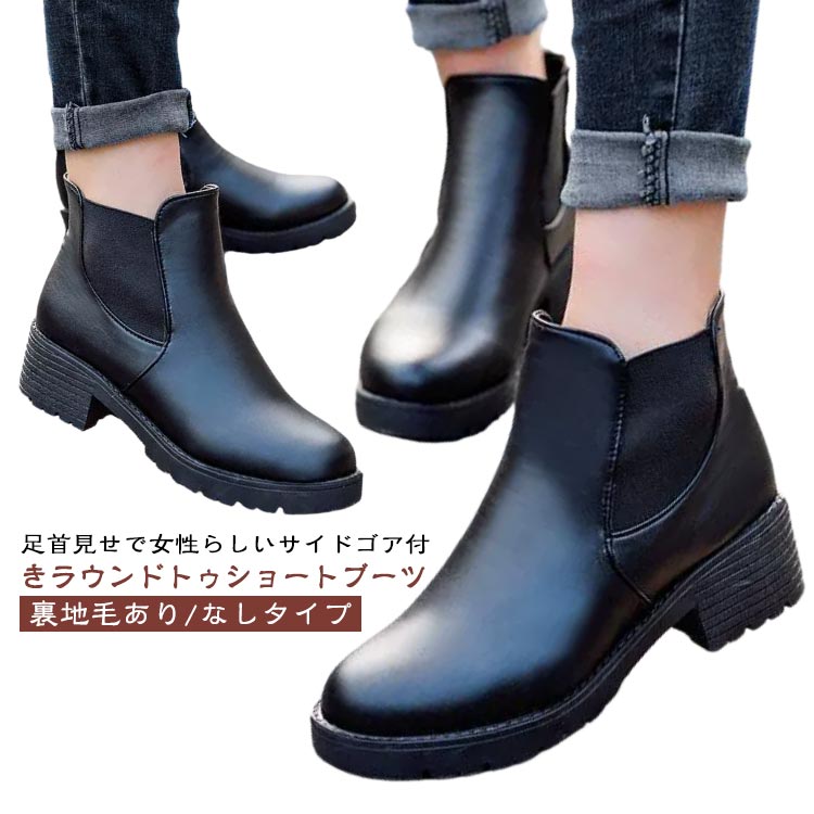 サイドゴアブーツ 裏起毛 ショートブーツ レディース 厚底 厚底ブーツ 秋冬 裏微起毛 ブーティ レザー ローヒール サイドゴア ブーツ 歩きやすい 美脚脚長 履きやすい アンクルブーツ