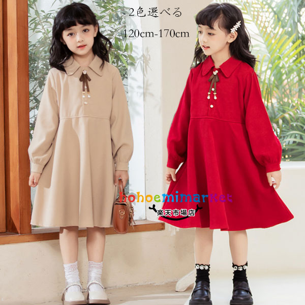 女の子 学院風 ワンピース キッズ 誕生日 結婚式 発表会 ワンピース 女の子 ワンピース フォーマル 長袖 ワンピース ページュ レッド 春着 秋着 学生 通学着 おしゃれ ワンピー 120-170