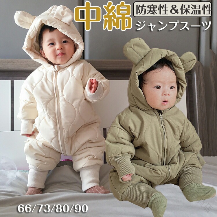 ベビー服 ジャンプスーツ ベビー カバーオール 秋冬 赤ちゃん 男の子 女の子 クマ耳フード付き 子供服 軽量 ダウンジャケット 韓国風 ロンパース 新生児 可愛い 防寒着 長袖 暖かい あ 撥水素材