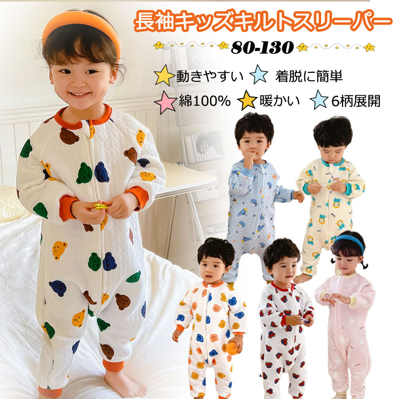 スリーパー 冬 浪漫樹 長袖 キッズ キルト パジャマ 綿100% ファスナー開閉 キッズスリーパー 春秋冬 寝袋パジャマ 厚手 ルームウェア ベビー服 赤ちゃん 中綿