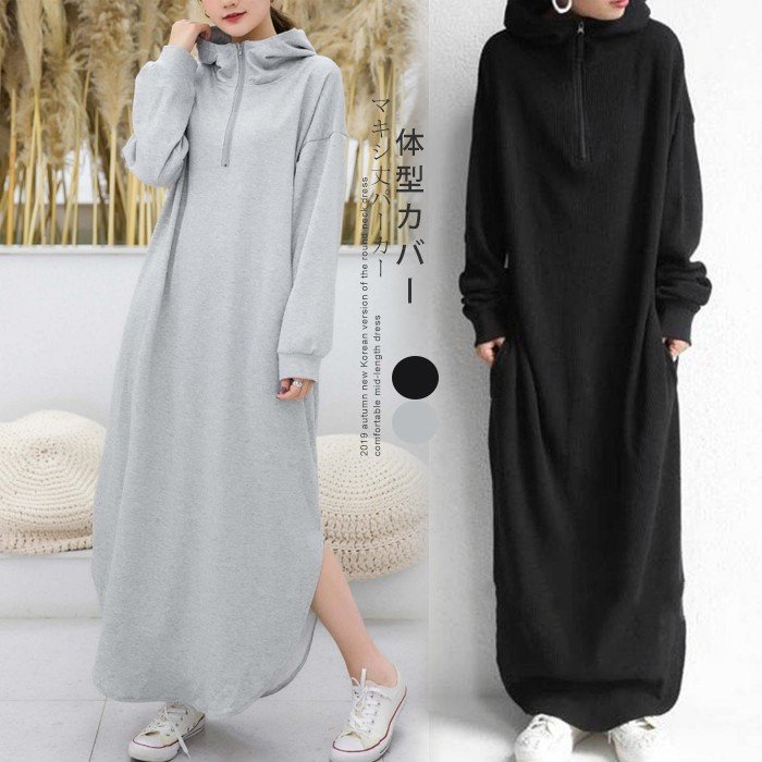 きれいめ 春 秋 スウェット ロングワンピ ロング丈 マキシワンピース ロングパーカー ワンピース フード付き パーカーワンピース