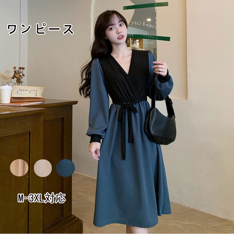 ニットワンピースレディース 秋冬 きれいめ 膝丈ワンピース ニット Vネック 長袖ニット タイトワンピース ロング丈 Aライン 着痩せ 40代 30代 オシャレ