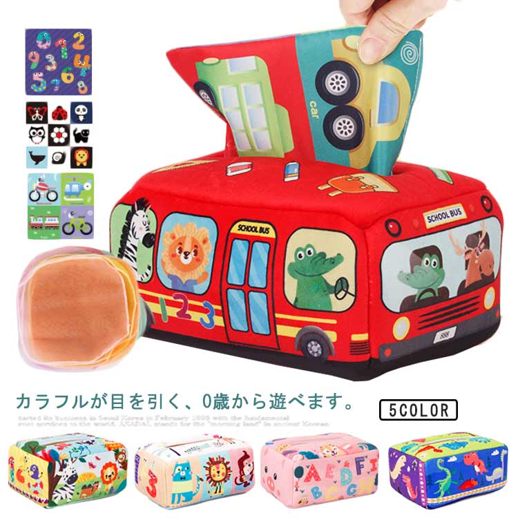 ベビーティッシュボックスおもちゃ モンテッソーリ おもちゃ 知育玩具 赤ちゃん おもちゃ ティッシュ 歯固め 洗える 指先訓練 聴覚発達 色認知 出産祝い プレゼント