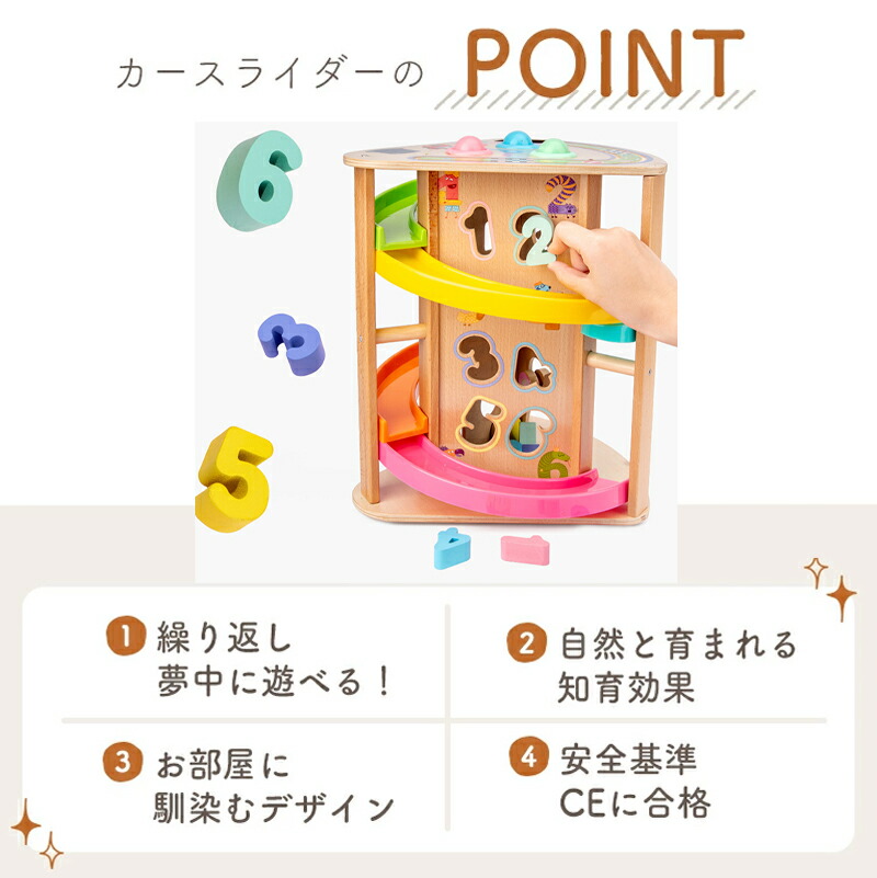 木のおもちゃ スロープトイ 多機能回転スライド車 型はめ パズル 知育玩具 カースライダー エデュテ おもちゃ 木製 1歳誕生日プレゼント 誕生日プレゼント 1歳 一歳 2歳 男の子 女の子 1歳半