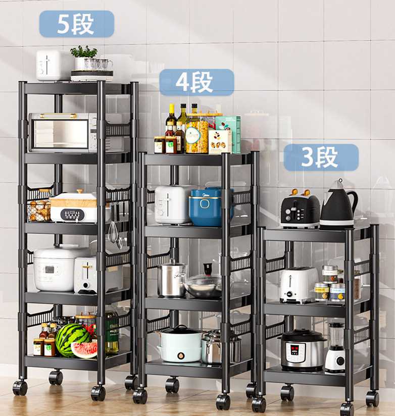 キャスター付きスリムメタルラック 電子レンジや炊飯器置き場に最適 キッチン収納をスッキリ整理 組み立て簡単で省スペース