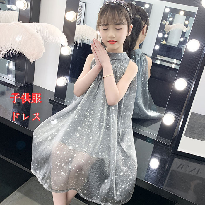 Aラインワンピース ノースリーブワンピース ロングワンピース 子供ドレスプリンセス ドレス チュールスカート 女児 キッズ 小学生 可愛い ガーリー カジュアル フォーマルドレス 110cm おしゃれ