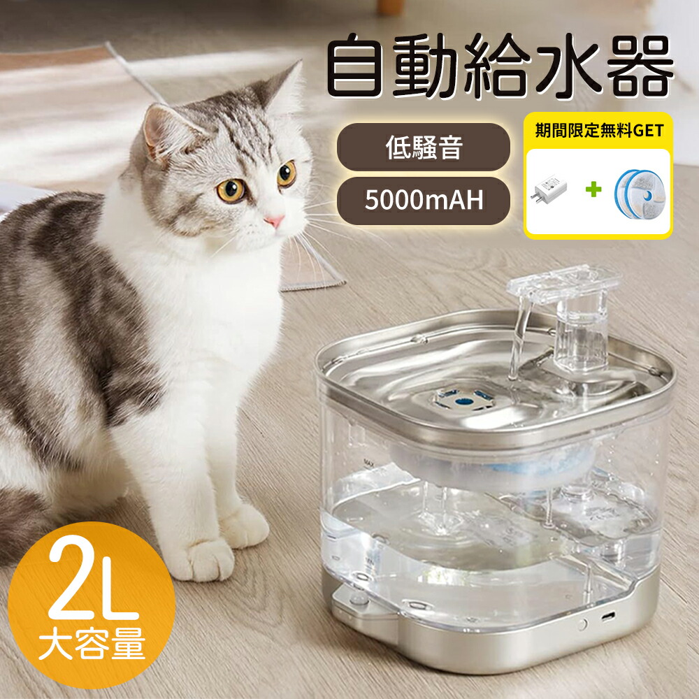自動給水器 猫 犬 コードレス 水飲み器 ステンレス製 2L 洗いやすい 給水器 取付簡単 ペット 自動水やり器 超静音 大容量 20dB静音ペットキット ペット用 自動給 多頭飼いも対応