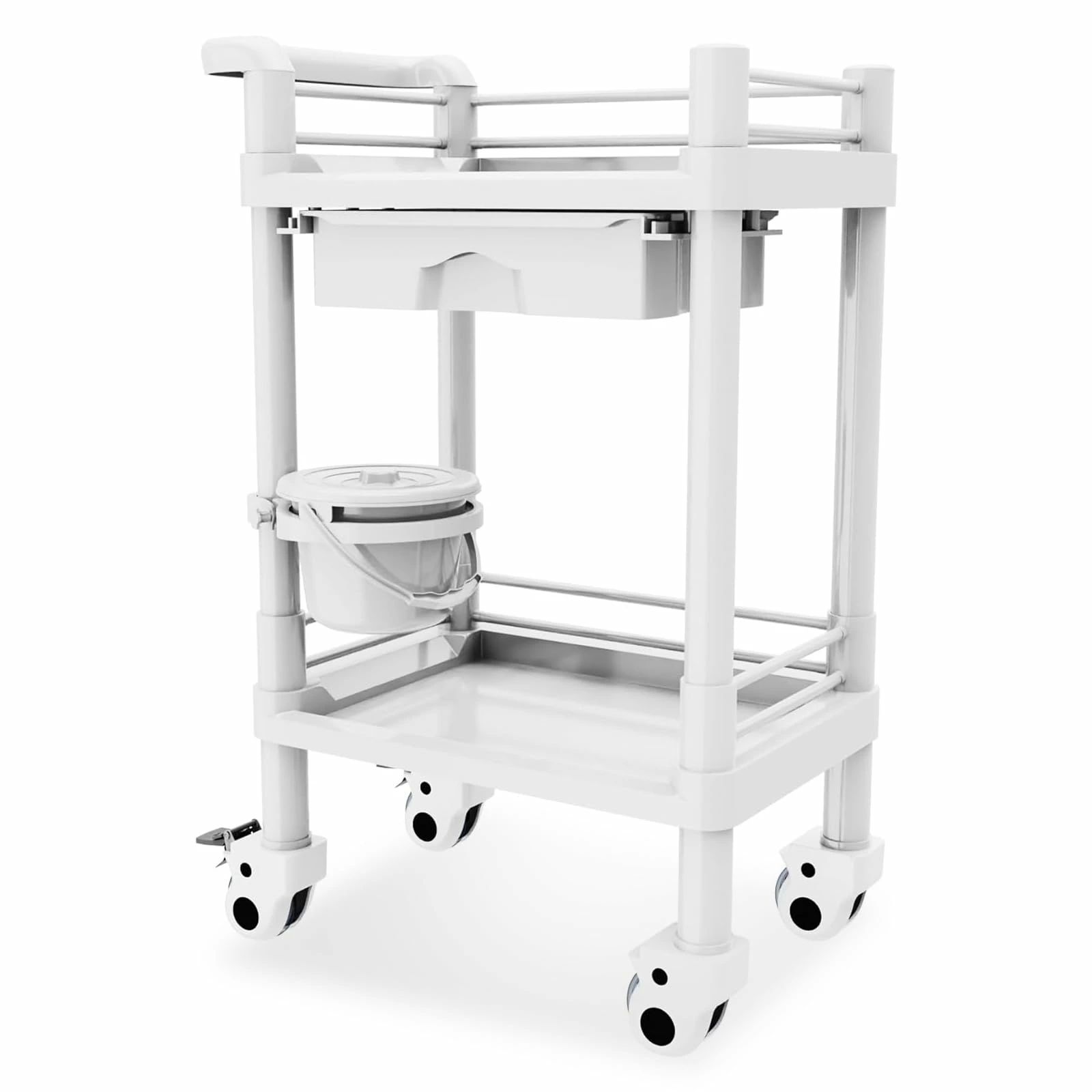 美容室 病院 回診車 引き出し ゴミ箱 ナースカート ブレーキ可能キャスター付き サービスカート 2段 3段 医療用トロリー ABS素材