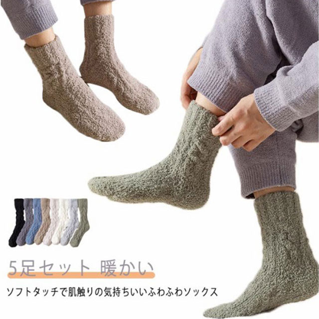 5足セット もこもこ靴下 メンズ 冷え対策 ルームソックス ストレッチ