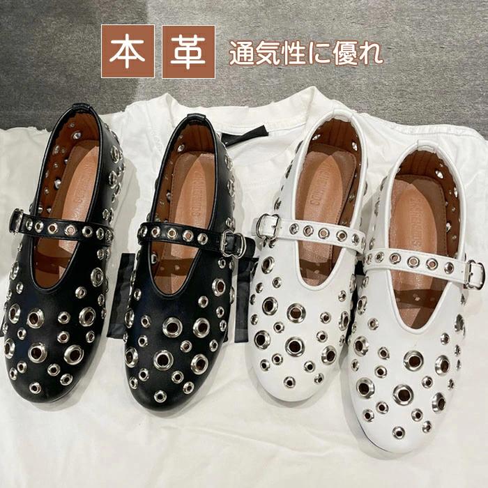パンクリベット サンダル 夏コーデサンダル サマー シューズ フラット ぺたんこ 透かし彫り バックル バレエ 通気性 レディース