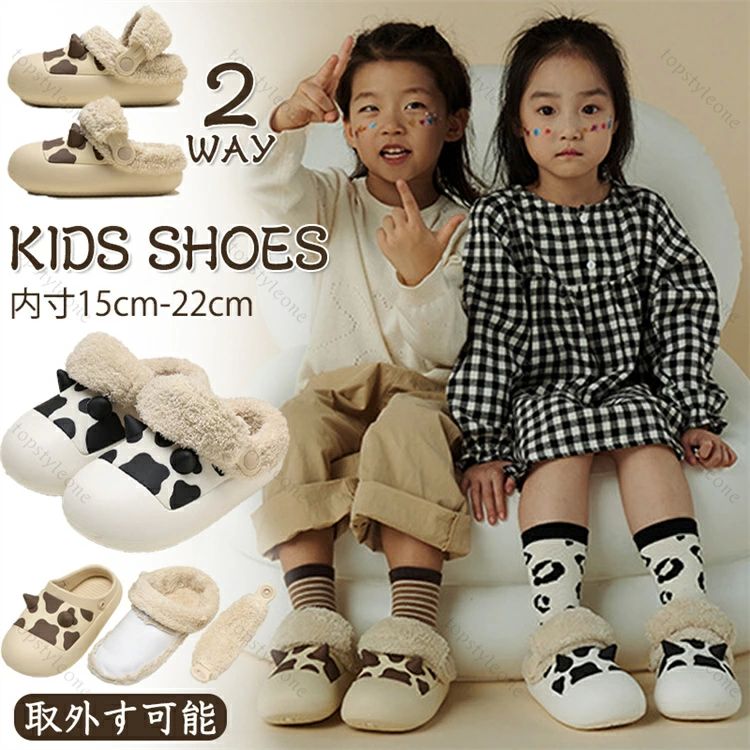 冬用サンダル キッズ 子供用 裏ボア ボアスリッパ 可愛い乳牛 ク