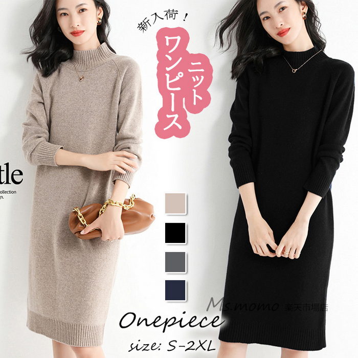 ニットワンピース 40代 オシャレ ニットワンピース 膝丈 秋冬 ニットワンピース 無地ストレートスカート ニットインナー セーター ゆったり 韓国風 大人 上品 30代 50代