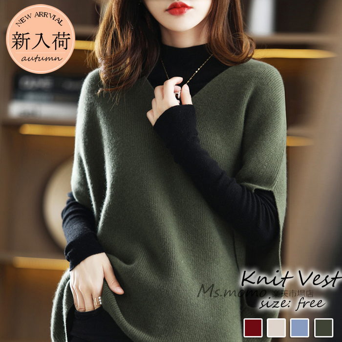 暖かく軽いウール素材使用で快適な着心地オフィスや普段使いに最適なデザイン冬の防寒対策におすすめのニットポンチョ87