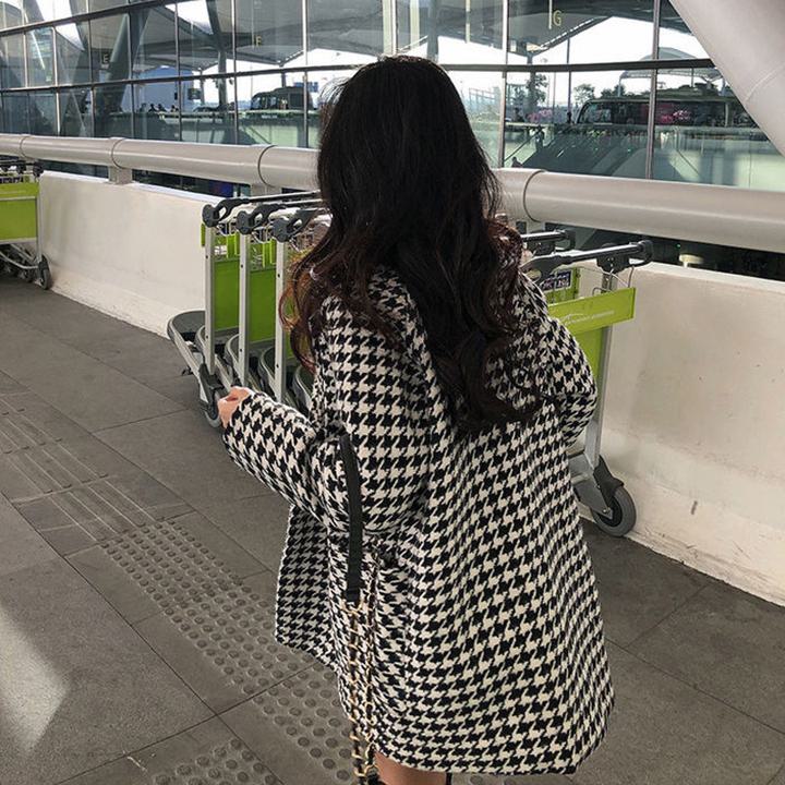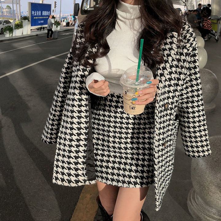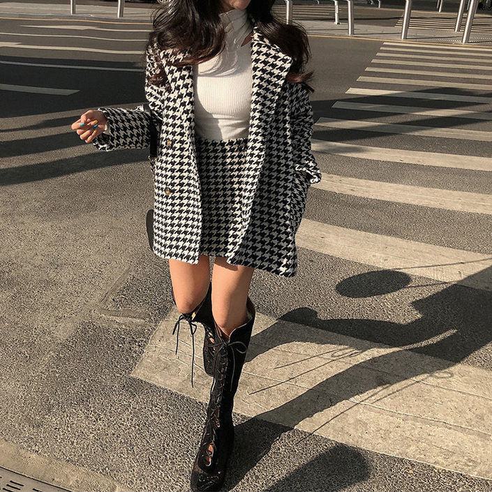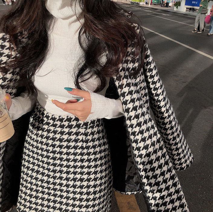 千鳥格子 ウールコート+ハイウエストス レディースファッション 新作 S M L XL XXL