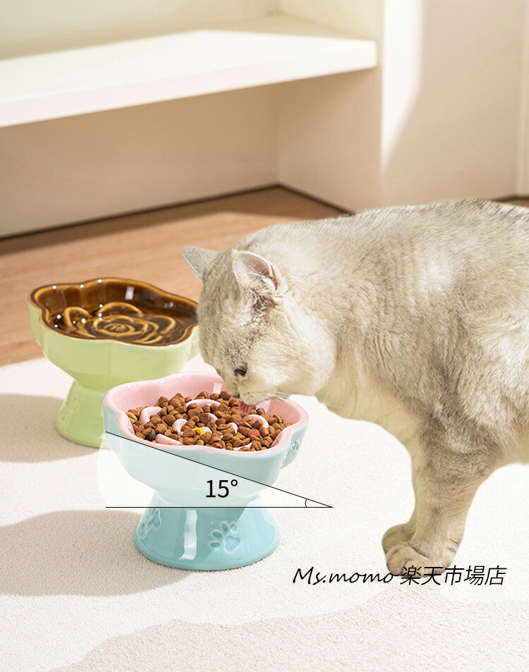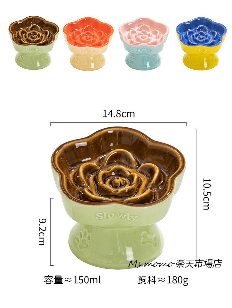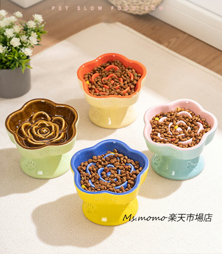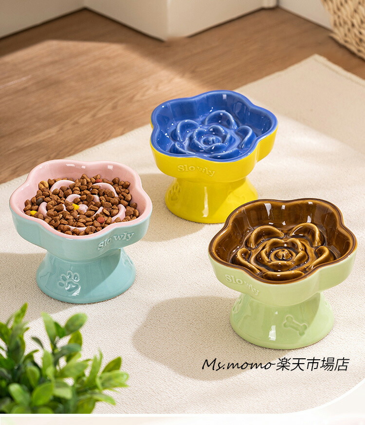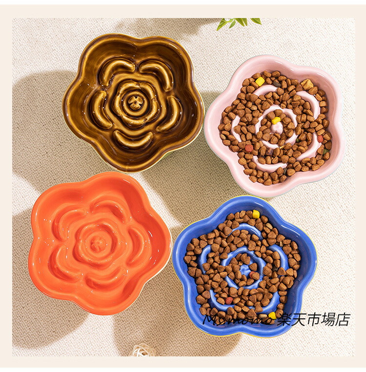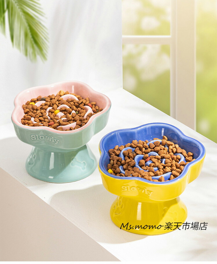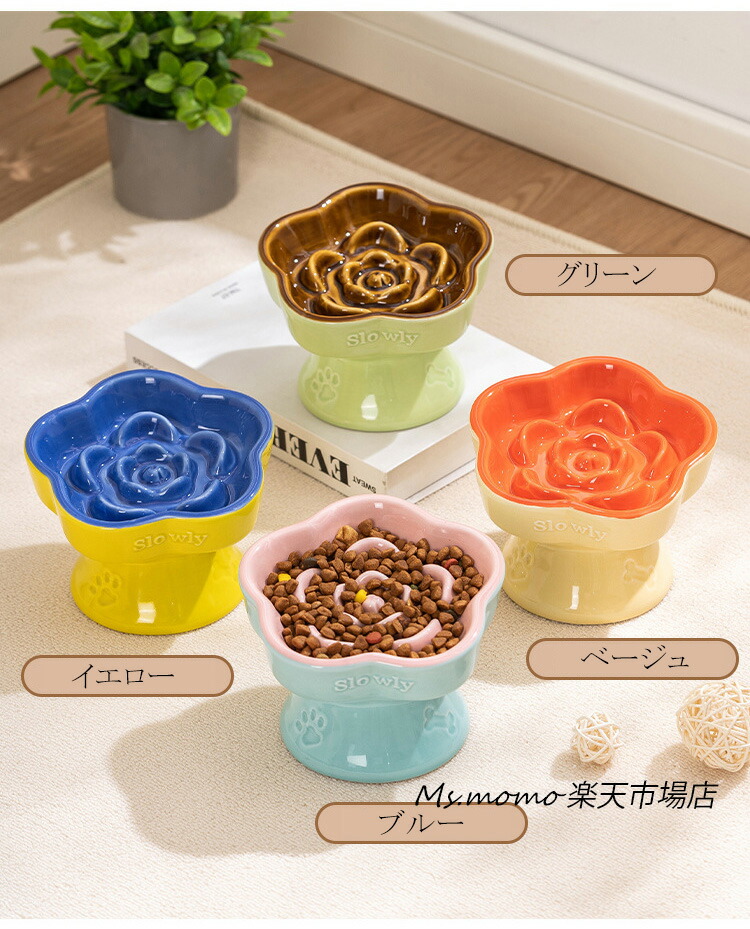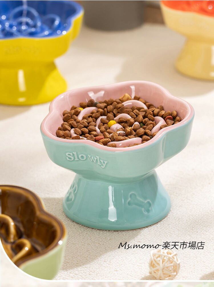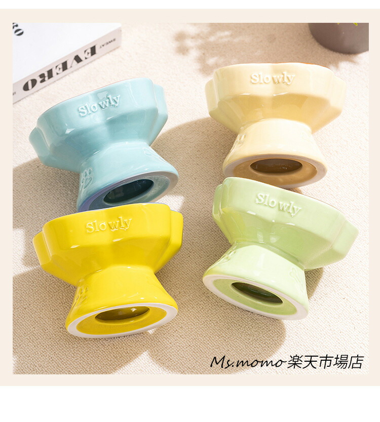 猫 食器 犬 フードボウル 早食い防止 ブルー グリーン ベージュ イエロー