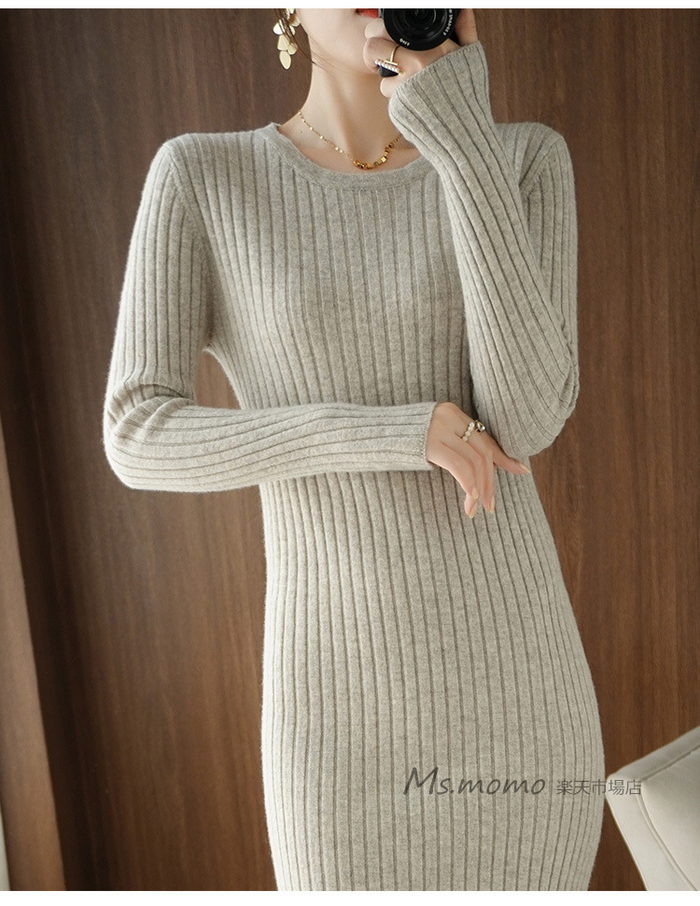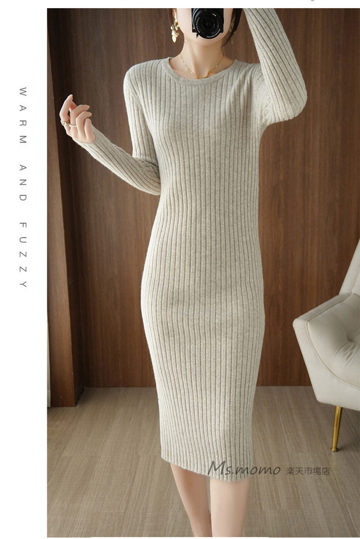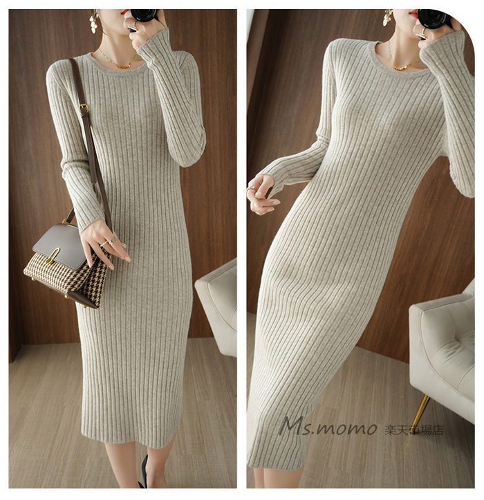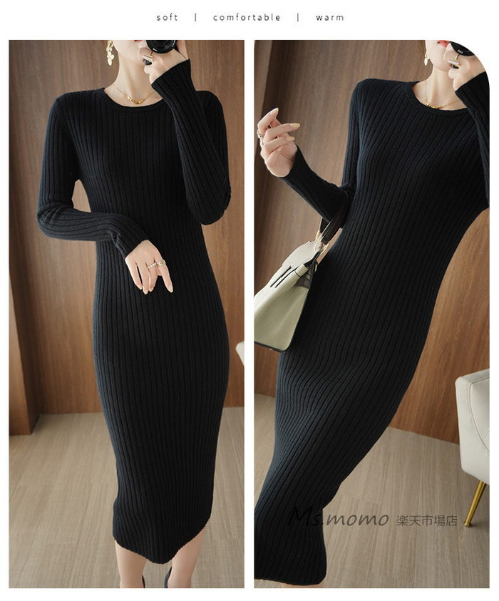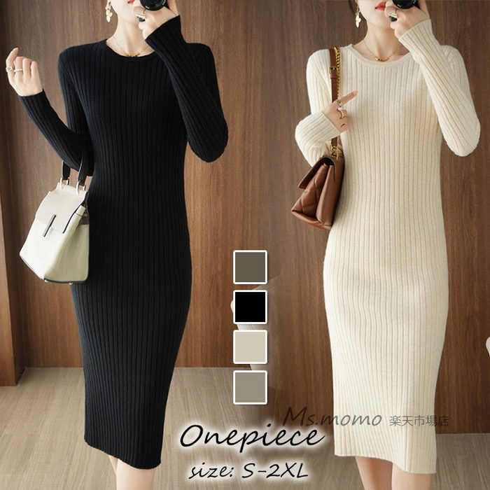 ニットワンピース 40代 オシャレ ロ レディースファッション 新登場! コーヒー オフホワイト 燕麦色 ブラック S M L XL 2XL