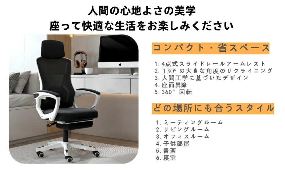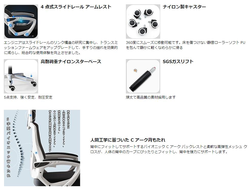 人間工学 オフィスチェア 360度回転 黒A グレーA ブルーA 黒B グレーB ブルーB