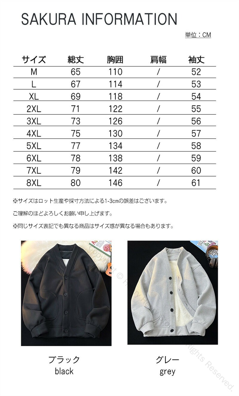カーディガン レディース メンズ ユニ トップス カーディガン 早い者勝ち ブラック グレー ブラック裏ボア グレー裏ボア M L XL 2XL 3XL 4XL 5XL 6XL 7XL 8XL